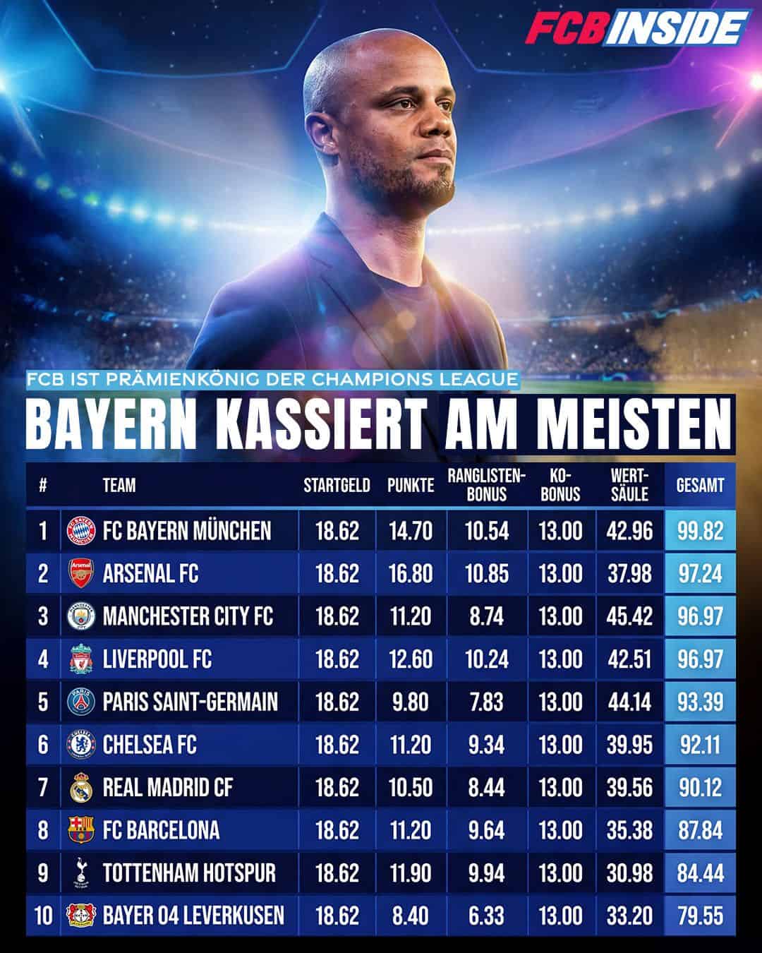 Mit sieben Siegen aus acht Spielen sicherten sich die Münchner souverän Platz zwei in der Tabelle hinter dem FC Arsenal und zogen direkt ins Achtelfinale ein. Diese starke Bilanz zahlt sich nun auch finanziell aus.